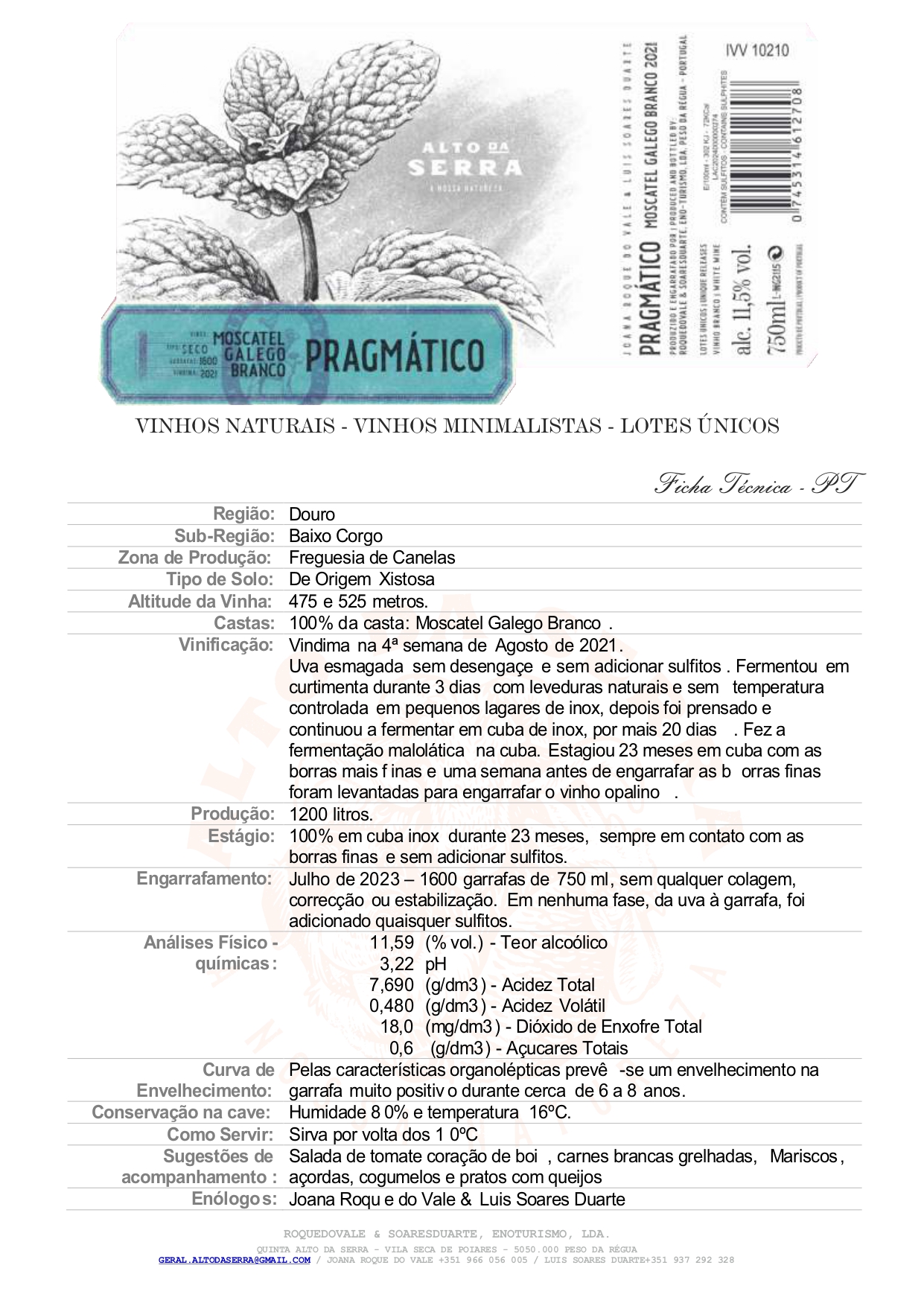 “Moscatel Galego Branco is a fantastic, multifaceted grape variety, prone to exaggeration. What enchants me most is its excellent acidity and aging potential. I started working with this grape variety very late, but I was completely won over. I don't like the ripe aromas of the grape variety, I love the vegetal, citrus, floral and even tropical components when it is harvested early (very early). Working well, we manage to produce very fine wines that are aromatically restrained (without exaggeration) and that (almost) never age..."